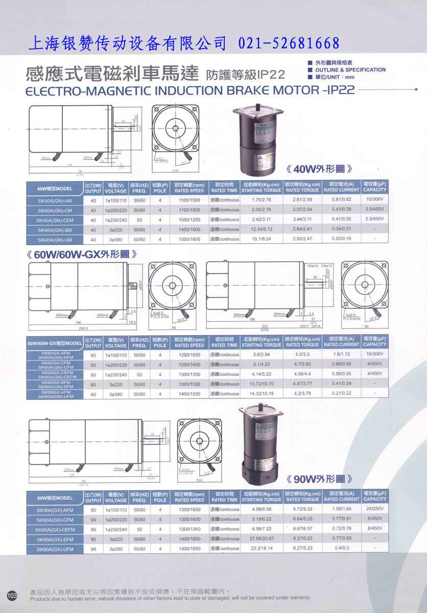 90W以下刹车马达,刀库小电机型号:(还有更多型号,请来电咨询)021-52681668